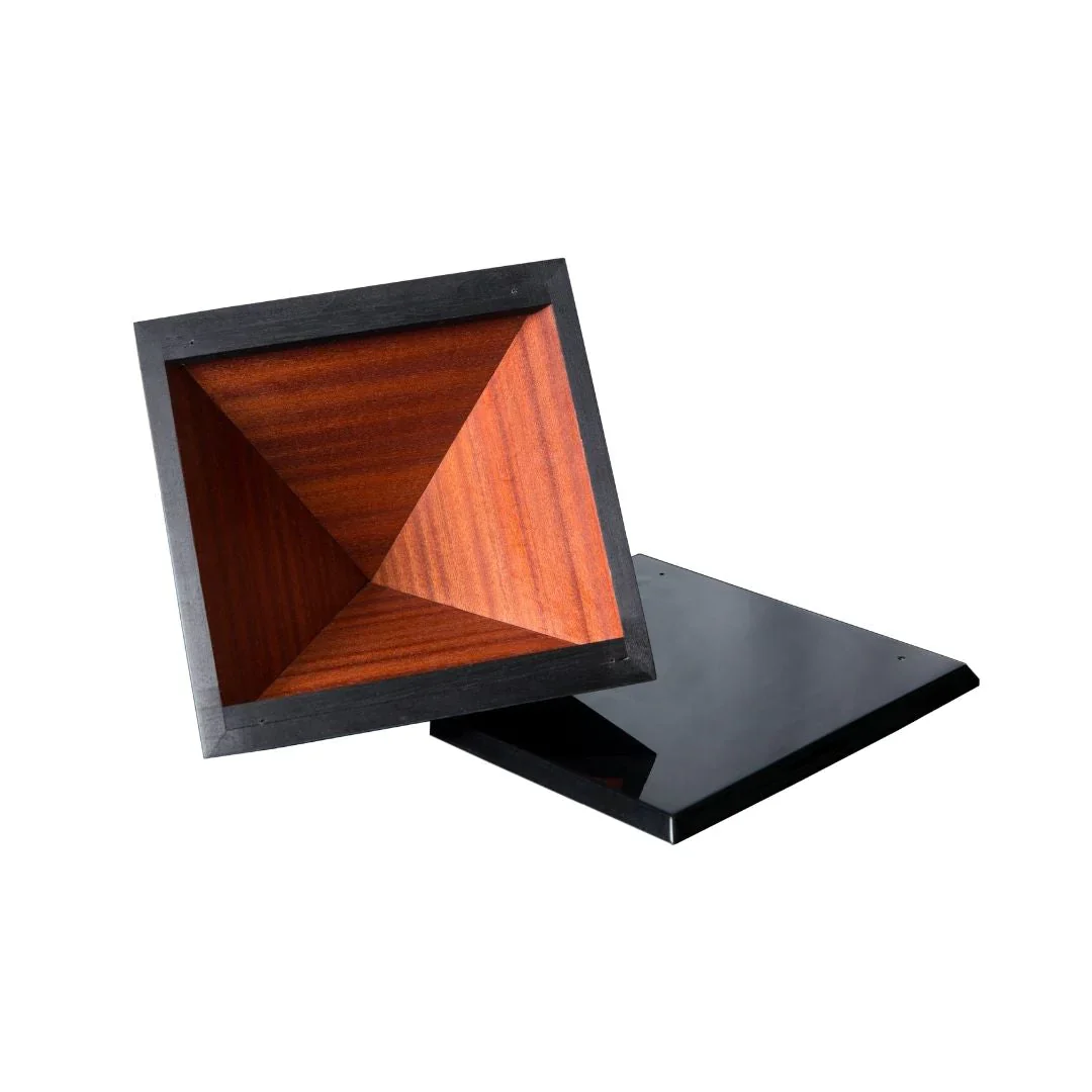The Pyramid is a stunningly unique urn. Handmade in Italy from rare, sustainably-sourced woods, it is anĀ elegant, modern way to memorializeĀ a loved one.Ā The interiors are made from mahogany woods. A plastic bag and ribbon is provided within the vessel. Our wood is sustainably sourced and highly respectful of environmental biodiversity.Ā
