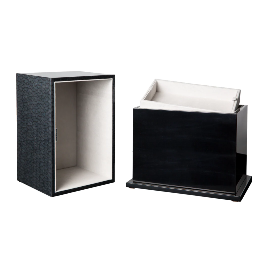 Handmade by artisans in Italy, theĀ Thompson urn inĀ navy isĀ made from sustainably-sourced woodĀ and is an incredibly elegant way to memorialize your loved one. The interiorĀ is lined with soft Florentine velvet andĀ is provided with a removable tray suitable for a variety of personal keepsakes, letters, jewelry and watches.Ā Our wood is sustainably sourced and highly respectful of environmental biodiversity.Ā